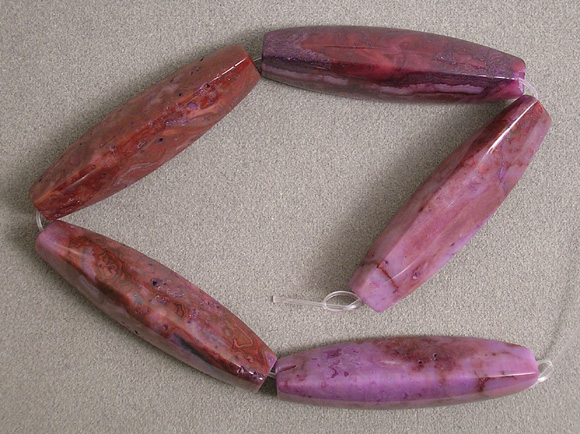 ![]() Purple crazy lace agate beads in unusual three side barrel shape. These beads are most likely dyed. |