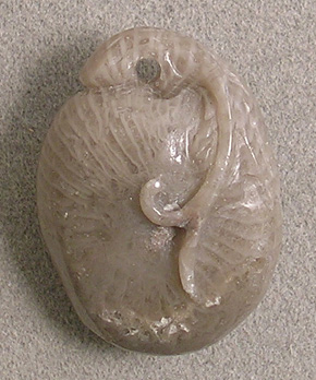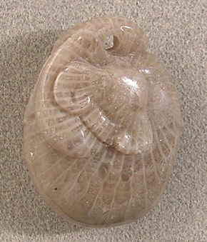 ![]() Utah horn coral pendant bead, finely carved front and back. The bottom of the back of this pendant (second picture) is slightly rough as shows in the photo. |