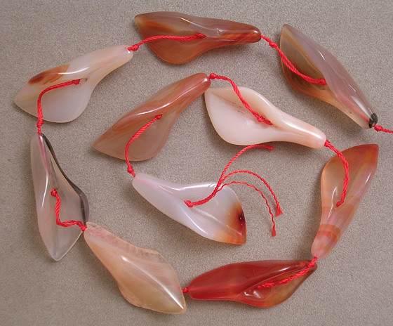Agate carved petal beads Catalog 1042 10 beads 42 x 18 x 12mm 323 carats $45 |