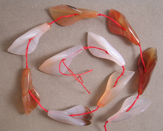 Carved agate flower beads Catalog 1044 10 beads 42 x 18 x 12mm 319 carats $40 |
