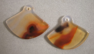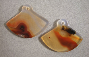 ![]() ![]() Two fan shaped pendant beads from red, yellow and black agate. |