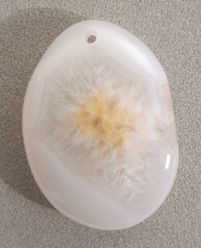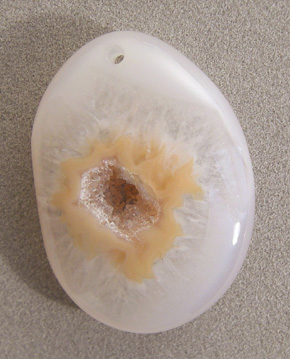 ![]() Tan and white quartz agate pendant bead with small geode druzy cave in center. |