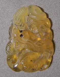 ![]() Supersize The eyes of the dragon are seen on the middle left of this carved pendant. |
