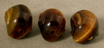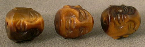 | Tiger eye Buddha head beads Catalog 5511 3 beads 11 mm tall(largest) 31 ct. $12.50 |