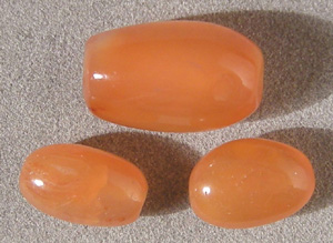 Carnelian barrel beads Catalog 5861 3 beads 14 x 8.5mm to 19.5 x 12.2mm 37.25 carats $18(SOLD) |