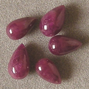 Ruby briolette beads Catalog 6214 5 beads 8.7 x 5.1mm to 9.6 x 5.7mm 13.15 carats $19(SOLD) |