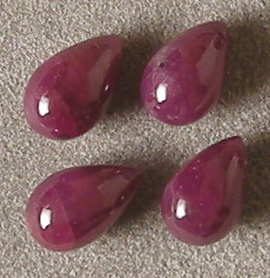 ![]() These four ruby drop briolette beads are also smaller than the other ruby beads here. |