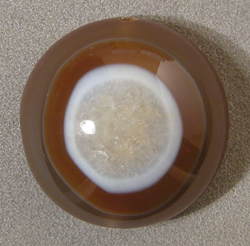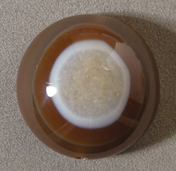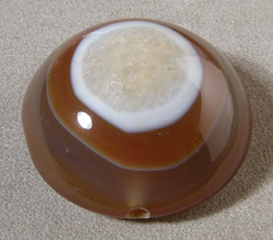 ![]() | Quartz druzy in center of large bullseye agate pendant with flat back. |