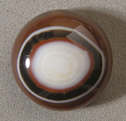 ![]() | Large white, brown and black bullseye agate pendant with flat back. |