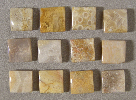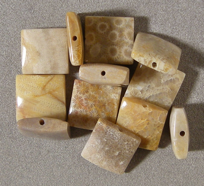 Fossil coral square beads Catalog 7371 12 beads 15 x 15 x 5mm 100 carats $18(SOLD) |