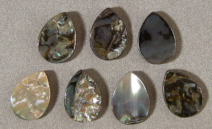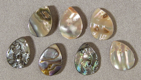 Abalone flat briolette beads Catalog 7391 7 beads 18 x 13 x 3mm 34 carats $17 |