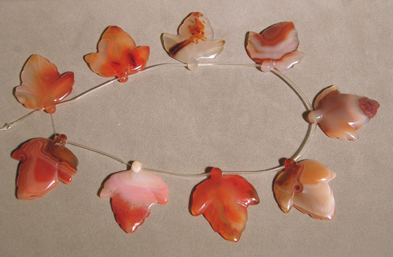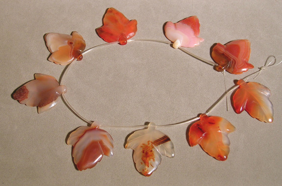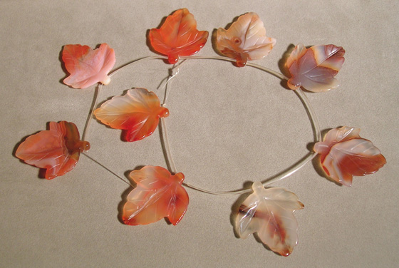 Leaves carved from agate Catalog 1428 42 x 38 x 3mm each 394 ct. total $35(SOLD) |