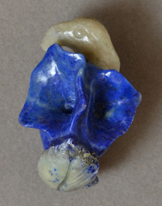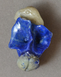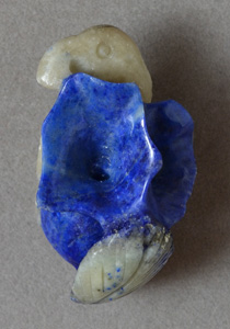 ![]() Supersize | Blue lapis lazuli carved flower and grey opal bird. Loop under bird's beak for stringing. |