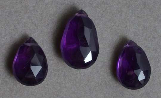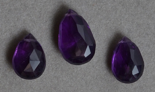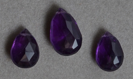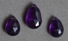 Amethyst faceted drop briolette beads Catalog 6920 3 beads 12 to 14mm long 11 carats $14 |