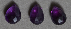 Amethyst faceted drop briolette beads Catalog 6921 3 beads 12mm long 12.5 carats $16(SOLD) |