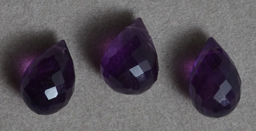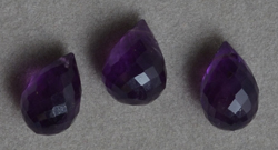 | These final three amethyst drop briolette beads are different from the previous three sets. They are round like tops instead of flat. | |