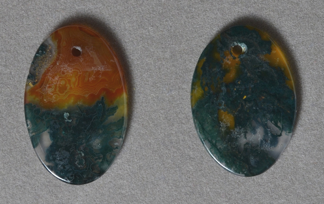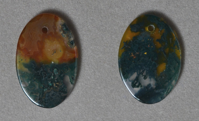 ![]() Supersize ![]() Supersize Two flat oval pendant beads from red and green moss agate. Could also be for earrings. |