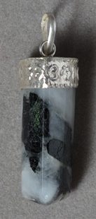 Himalayan quartz/tourmaline pendant Catalog 8062 1 beads 29 x 10.5mm 30 carats $15 |