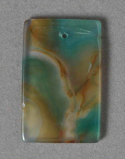 | Rectangle pendant bead from blue-green, brown and white agate. | |