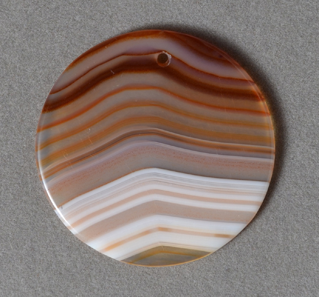 | The lines in this cream and rust colored agate resemble waves or mountains. | |