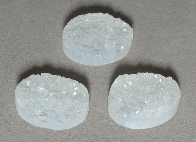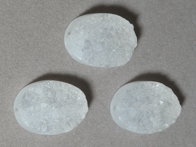 Druzy quartz oval beads Catalog 8066 3 beads 24.24 x 18.30 x 8mm 90 carats $12 |