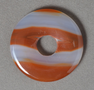 | Tai-ky(donut shaped) pendant bead from orange and grey agate. | |