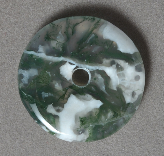 | Indian moss agate tai-ky (Chinese symbol for infinity) pendant bead. | |