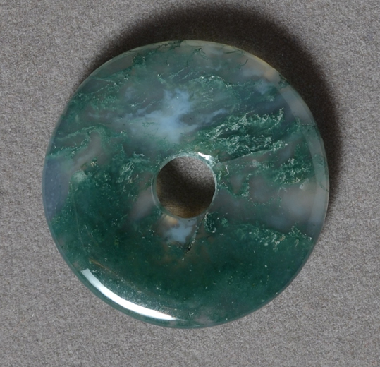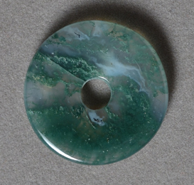 | Green moss swirling in milky white agate AA Indian moss agate. Donut shaped bead (called Tai Kai.) | |