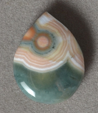 | Wide teardrop bead from green with red, white and brown ocean jasper. | |