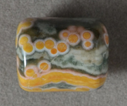 Ocean jasper drum bead Catalog 8363 1 bead 14 x 11mm 16 carats $9(SOLD) |
