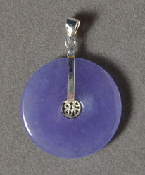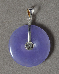 | This pendant uses a sugilite donut bead mounted in a .925 sterling silver bale. | |