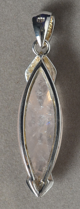 Morganite/sterling pendant Catalog 8376 1 pendant 38 x 13 x 6mm cabochon 56mm total height 46.5 carats $27 |