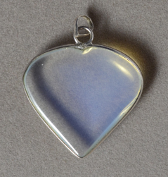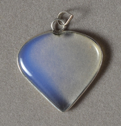 | Pendant with opal heart shaped cabochon and sterling silver bale. The opal has blue fire and is possibly man made. | |
