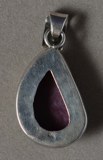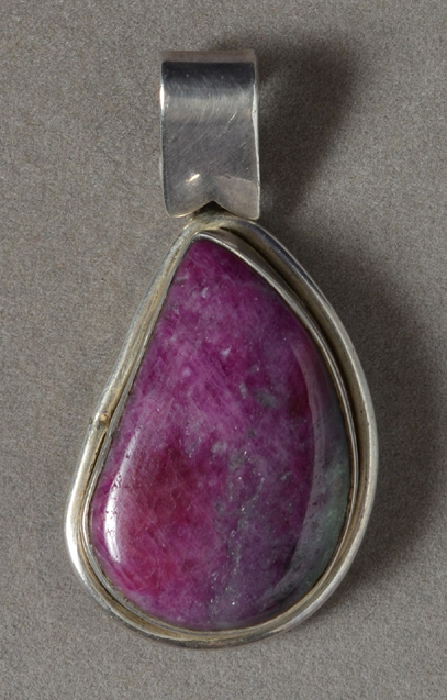 | Silver pendant with freeform Indian ruby cabochon. | |
