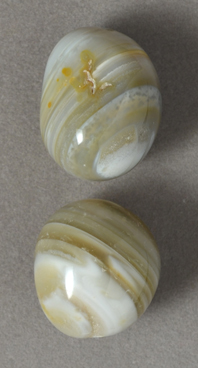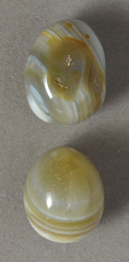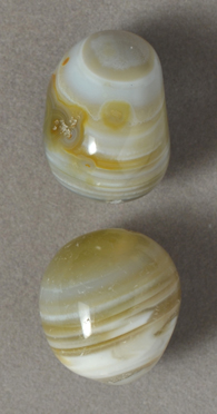 Two larger nugget beads from Botswana striped agate. Drilled from top to bottom in photo. 2mm hole. |