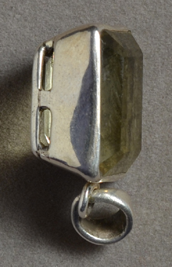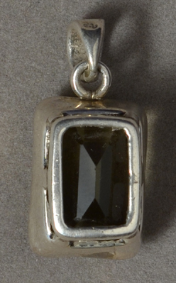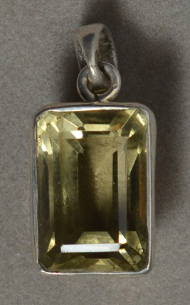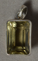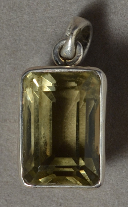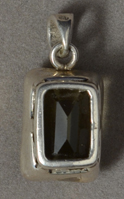 | Large smoky quartz faceted stone with silver basket type bezel. | |