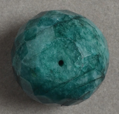 Large faceted rondelle bead from the semi precious opaque variety of emerald. |
