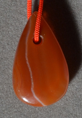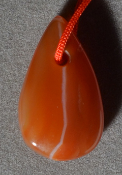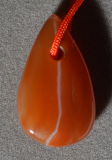 | Orange or red with white agate. Small teardrop shaped pendant bead. | |