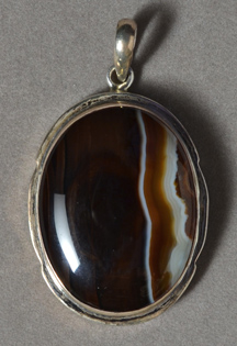 Brown and white agate pendant Catalog 8405 1 pendant 43 x 34 x 11mm 129 carats $32(SOLD) |