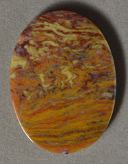 | Ocean wave jasper flat oval pendant bead. Drilled left to right at top in photo. | |