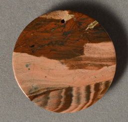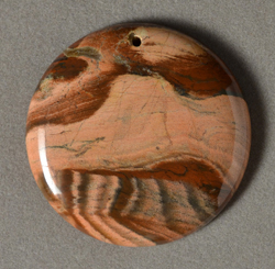 | West Australian red snake skin jasper flat round pendant bead. | |