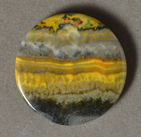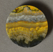 | Flat round pendant bead from yellow banded opal. | |
