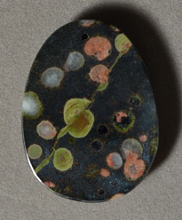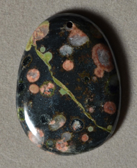 | Flat oval pendant bead from plumite jasper. | |