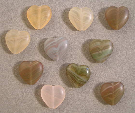 10 glass heart beads Catalog 6373 10 beads 16 x 15 mm 94 carats $4.50 |