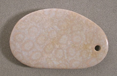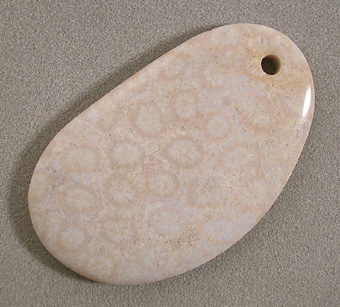 ![]() Supersize Freeform pendant bead from coral with small fossils imbedded. The pendant is ovaloid in shape and has a flat back with the front rounded as in a cab. |