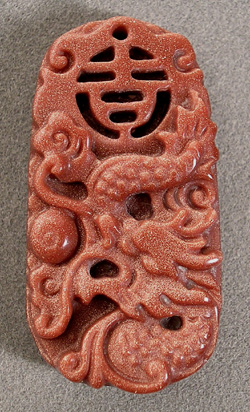 ![]() This red aventurine has a sparkly appearance from metallic like inclusions. It is a finely carved dragon. |
