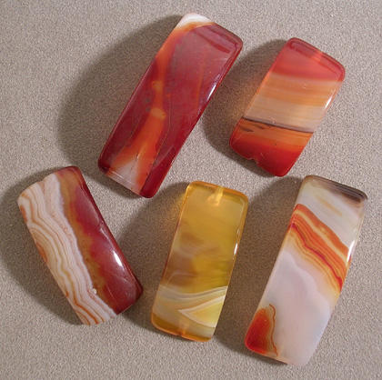 Botswana agate curved beads Catalog 5813 5 beads 32 x 12mm to 45 x 12mm 180 carats $18(SOLD) |
