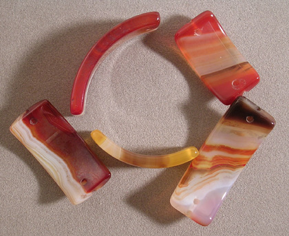 ![]() ![]() These unique curved beads from Botswana striped agate are drilled on each end. |