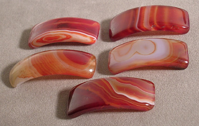 Botswana agate curved beads Catalog 5814 5 beads 36 x 14mm to 44 x 14mm 153 carats $15 SOLD |