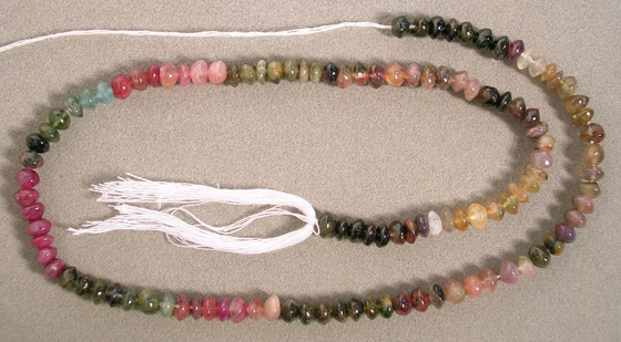 Supersize Tourmaline rondelle beads Catalog 1501 14 in. 5 x 3mm 67.2 ct. $25(SOLD) |